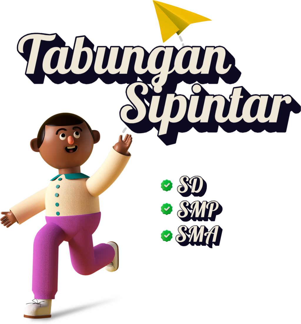 Tabungan Sipintar adalah tabungan yang diperuntukkan bagi pelajar mulai dari jenjang pendidikan SD, SMP, SMA hingga Kuliah.