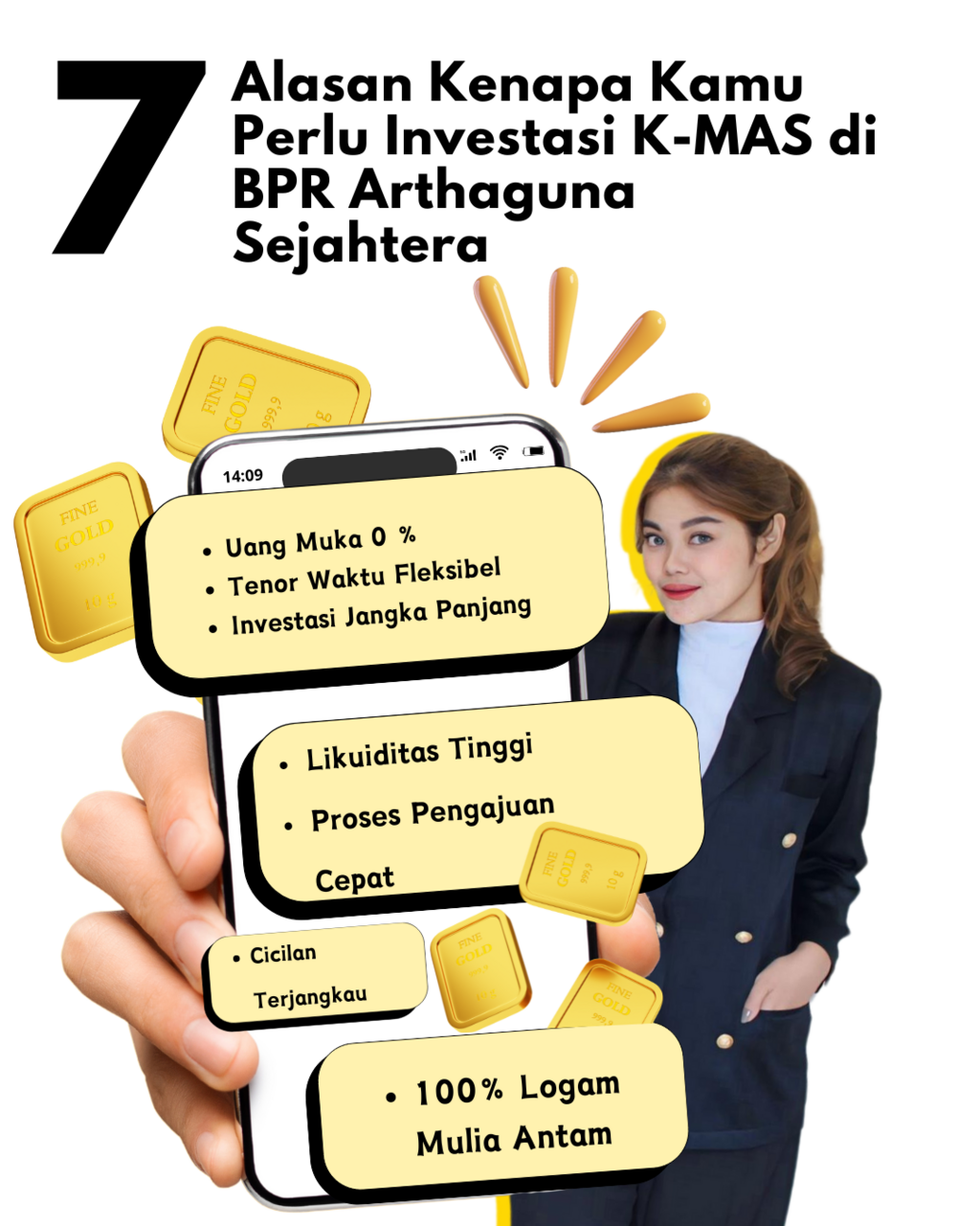 - Bentuk emas yang dijadikan sebagai jaminan adalah emas batangan dari Antam/LM